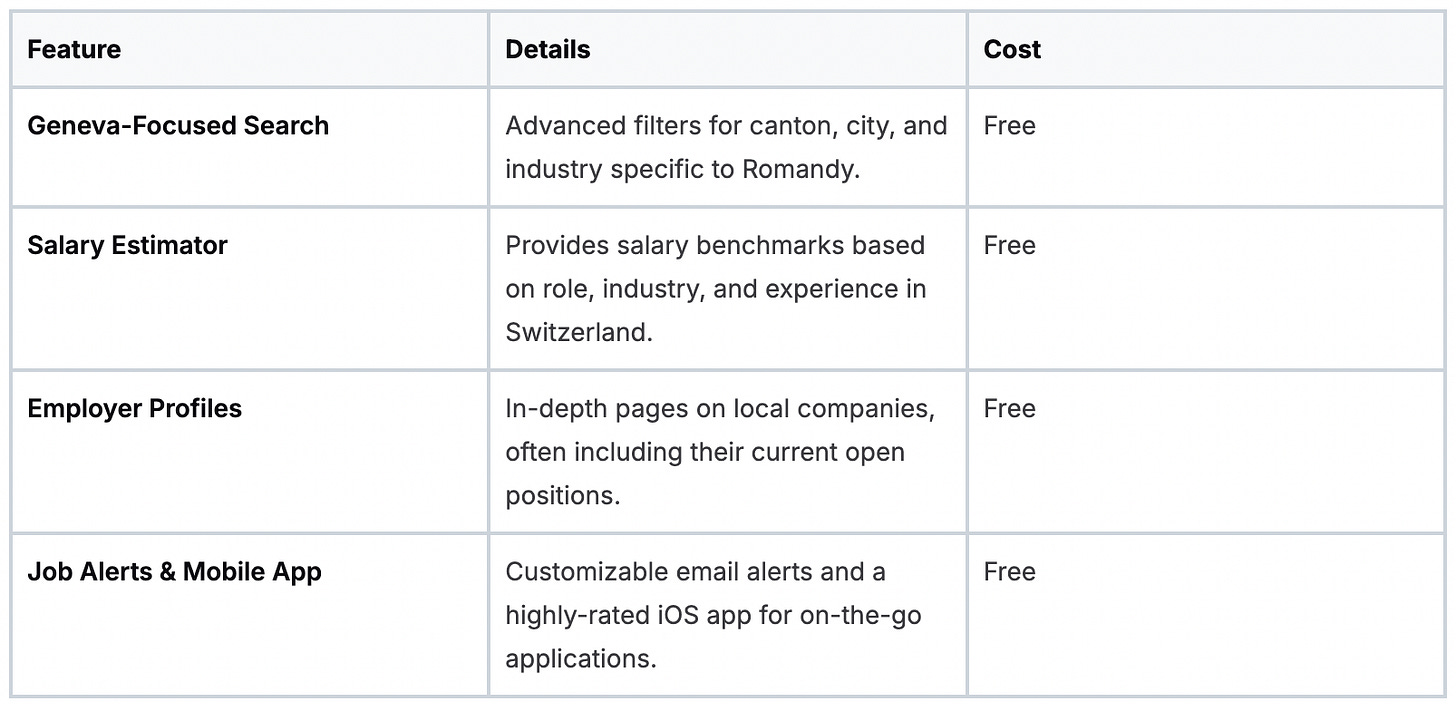 Insider Tip: Use the “Entreprises qui recrutent” (Companies that are hiring) section to proactively identify active employers in Geneva. Even if a perfect role isn’t listed, you can discover growing companies and make a direct approach.