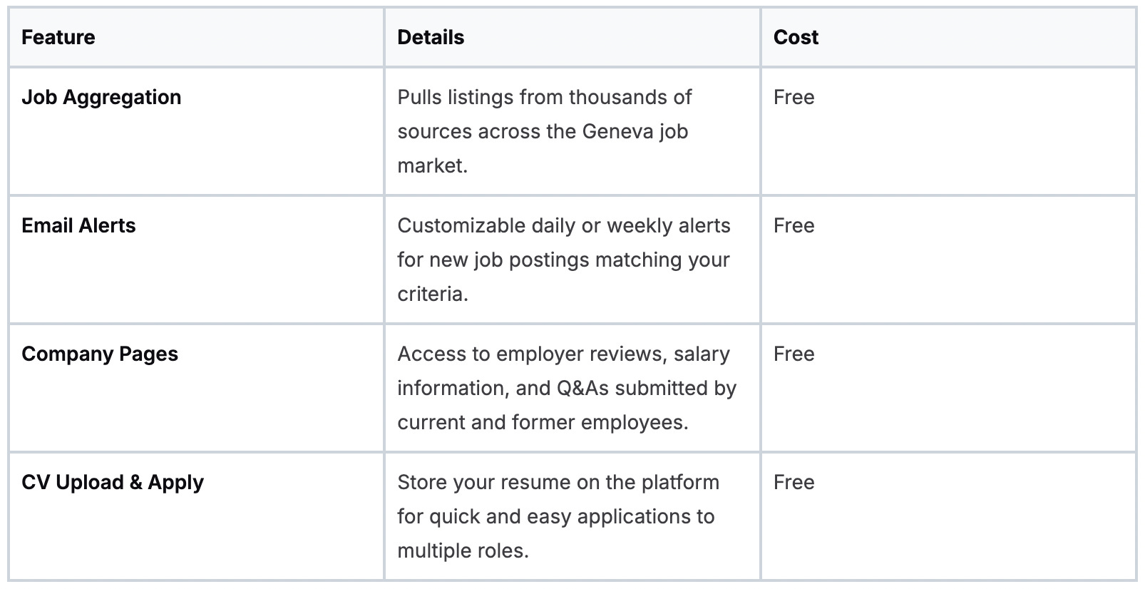 The entire platform is free for job seekers. Its main drawback is that its coverage of niche international roles (e.g., specific UN or NGO positions) can be less comprehensive than on specialist platforms. Additionally, since applications are often handled directly by smaller HR teams, response times can vary.