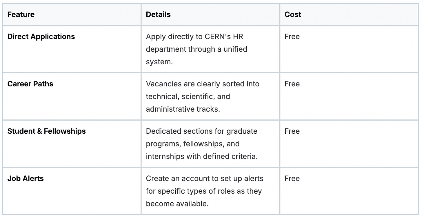 The application process is entirely free but is known for being extremely competitive. The main drawback is the intense competition for every open position and the fact that most roles require an on-site presence at the campus straddling the Franco-Swiss border. However, for those who make the cut, the experience and benefits are world-class.