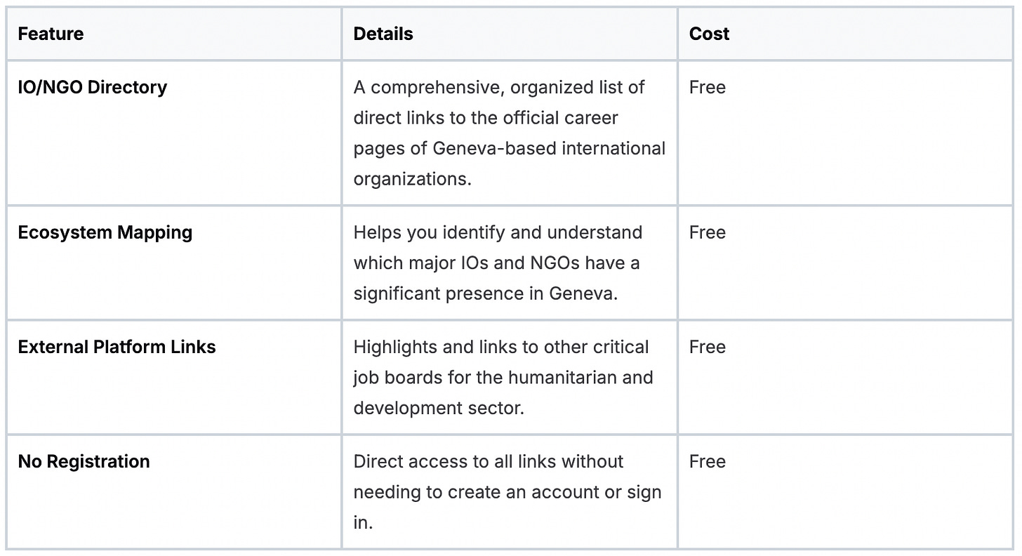 The service, a Substack publication by Rob Johnsen, is built on a predictable and effective rhythm. Subscribers receive targeted emails consolidating hard-to-find listings from over 30 multilateral development institutions. This focused approach means you spend less time searching and more time crafting quality applications for relevant job offers in Geneva and other major international hubs.