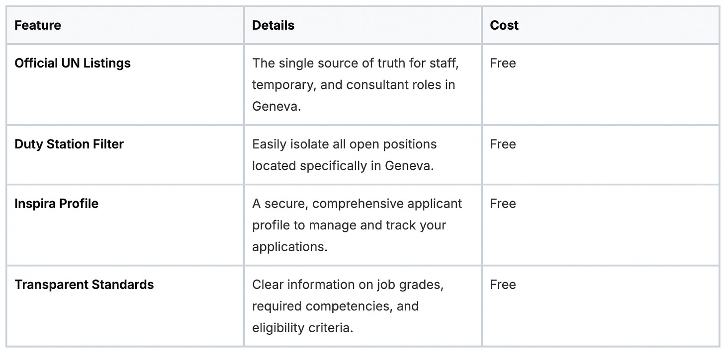Actionable Intelligence: A mid-week deep-dive email delivers long-form guides on critical topics. These explain everything from navigating Young Professionals Programs (YPPs) to understanding nationality requirements and demystifying salary grades.
