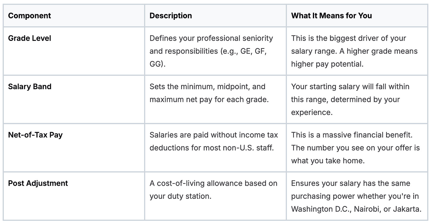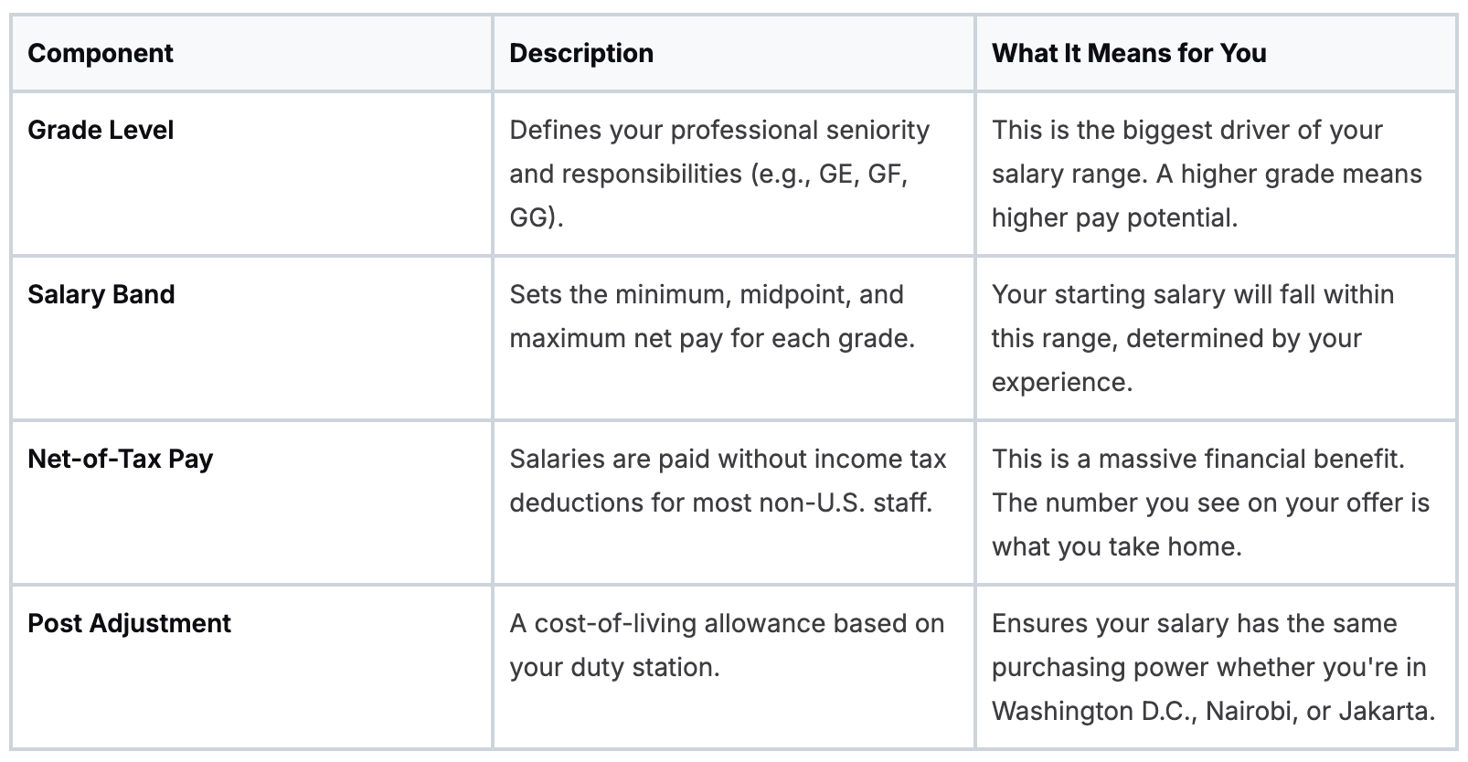 Understanding World Bank compensation is straightforward once you grasp a few core concepts. The system is designed to attract top global talent, so the Bank offers competitive, tax-advantaged pay adjusted for your duty station.