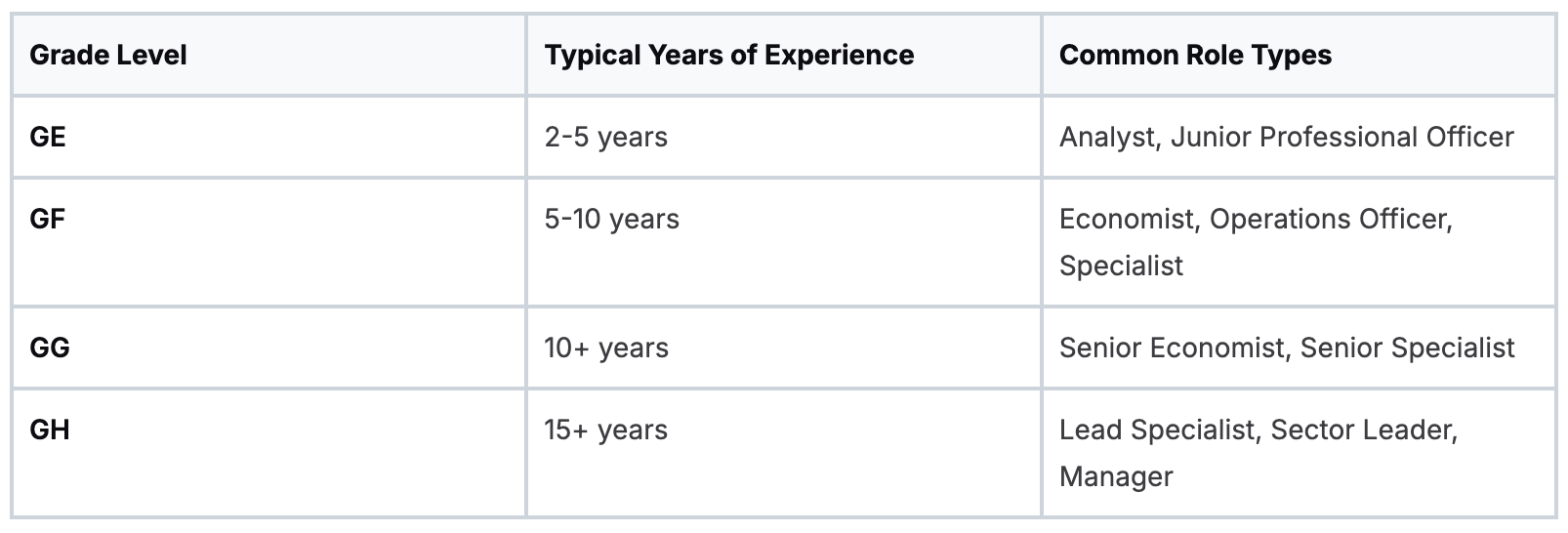 This table is a rough guide to help you estimate the right grade level based on your years of relevant professional experience. It’s not a hard rule, but it’s a solid starting point for figuring out where you fit.
