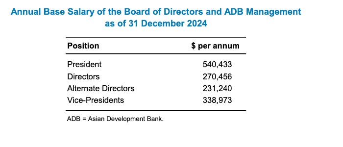 And since we’re all interested in MDBs here, it makes sense to take a look at how much the Presidents and Executive Directors of MDBs get paid.