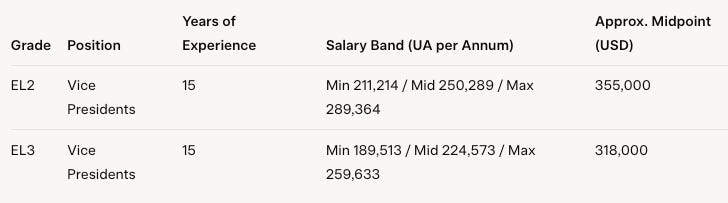 The president's salary isn't in standard grade data, since it’s set by the board. But vice presidents fall under executive levels. Benefits include tax-free pay, relocation, education grants, and medical coverage.