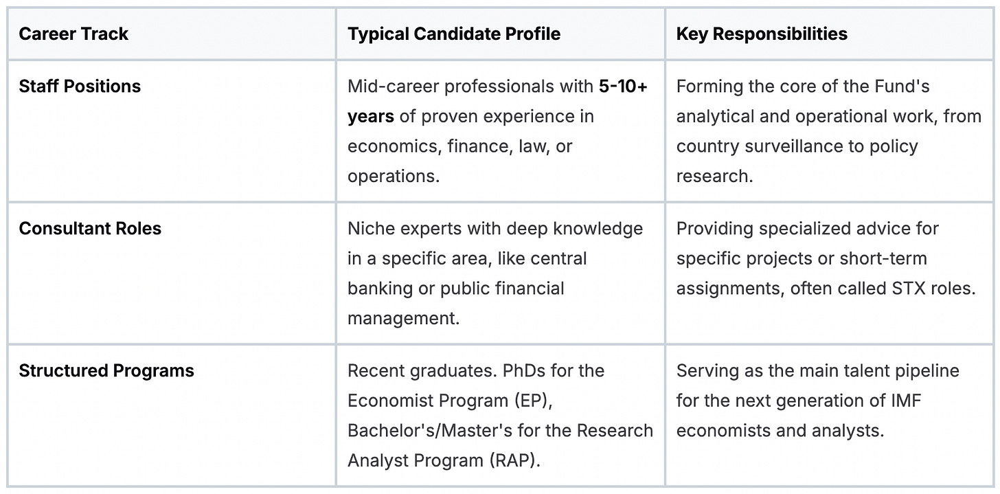 Key IMF Career Tracks at a Glance