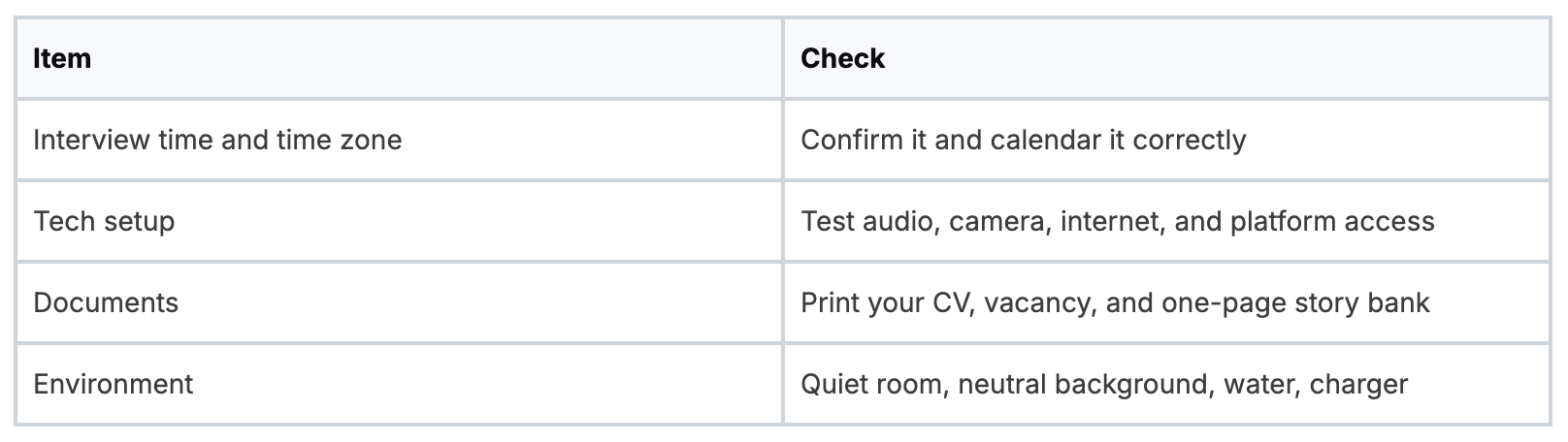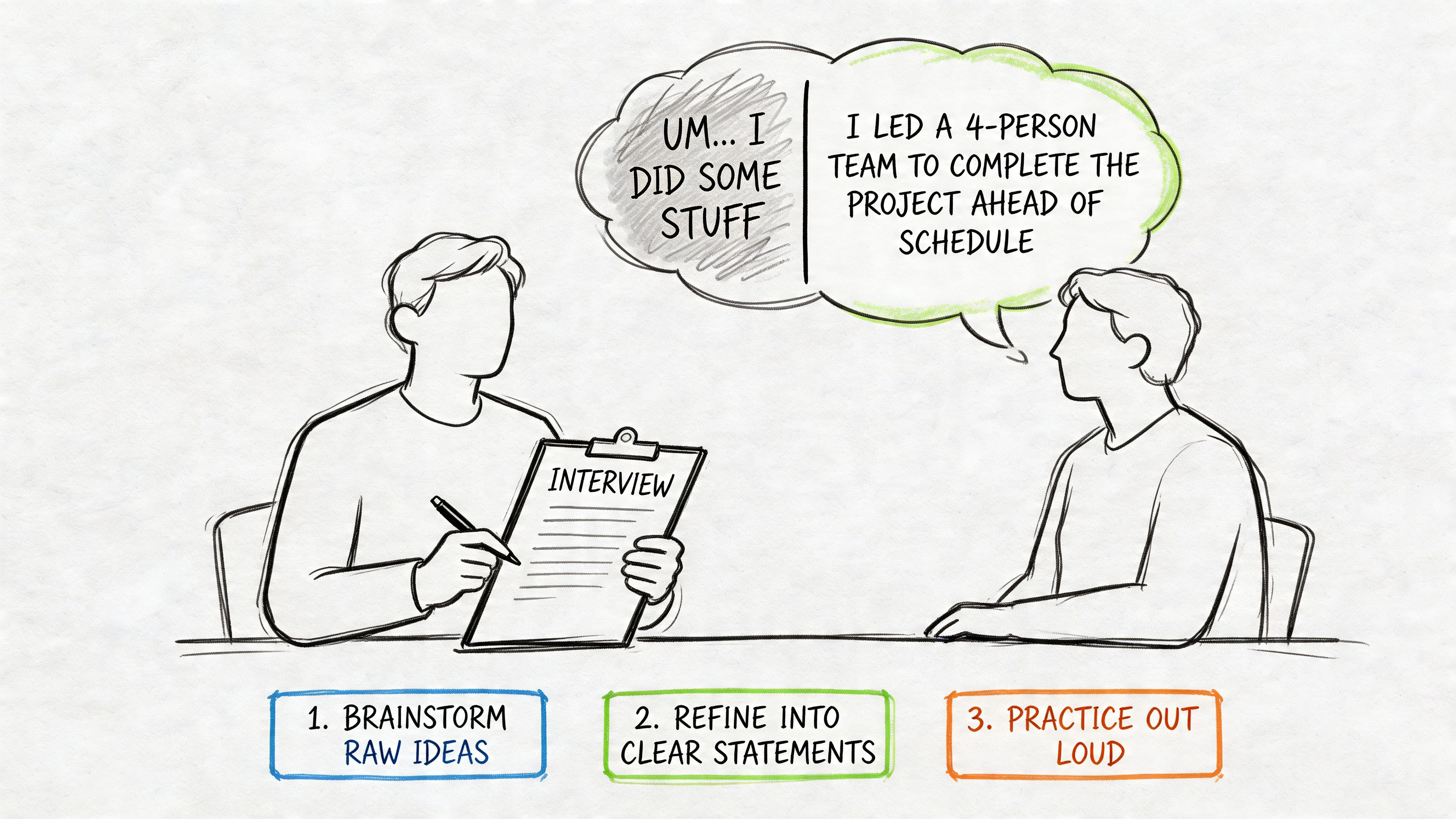 Core stories: rehearse your strongest examples until you can deliver them cleanly without sounding scripted