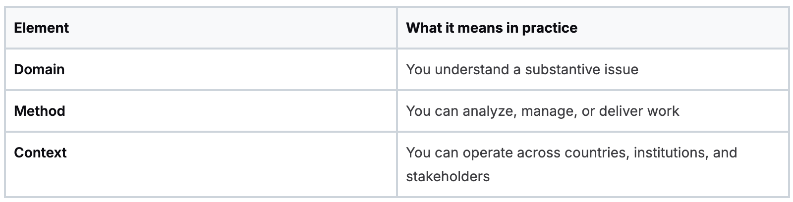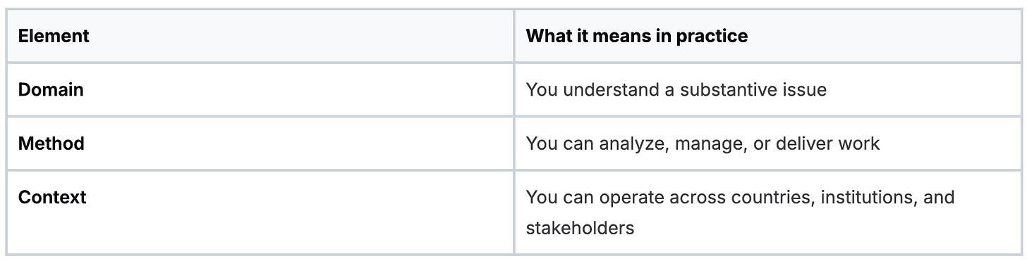 That means knowing how a project gets designed, funded, staffed, supervised, reported on, and eventually handed over. It also means understanding that the field is broad. Policy, finance, data, safeguards, MEL, procurement, communications, governance, climate, health, and education all sit under the same umbrella, but they hire differently.