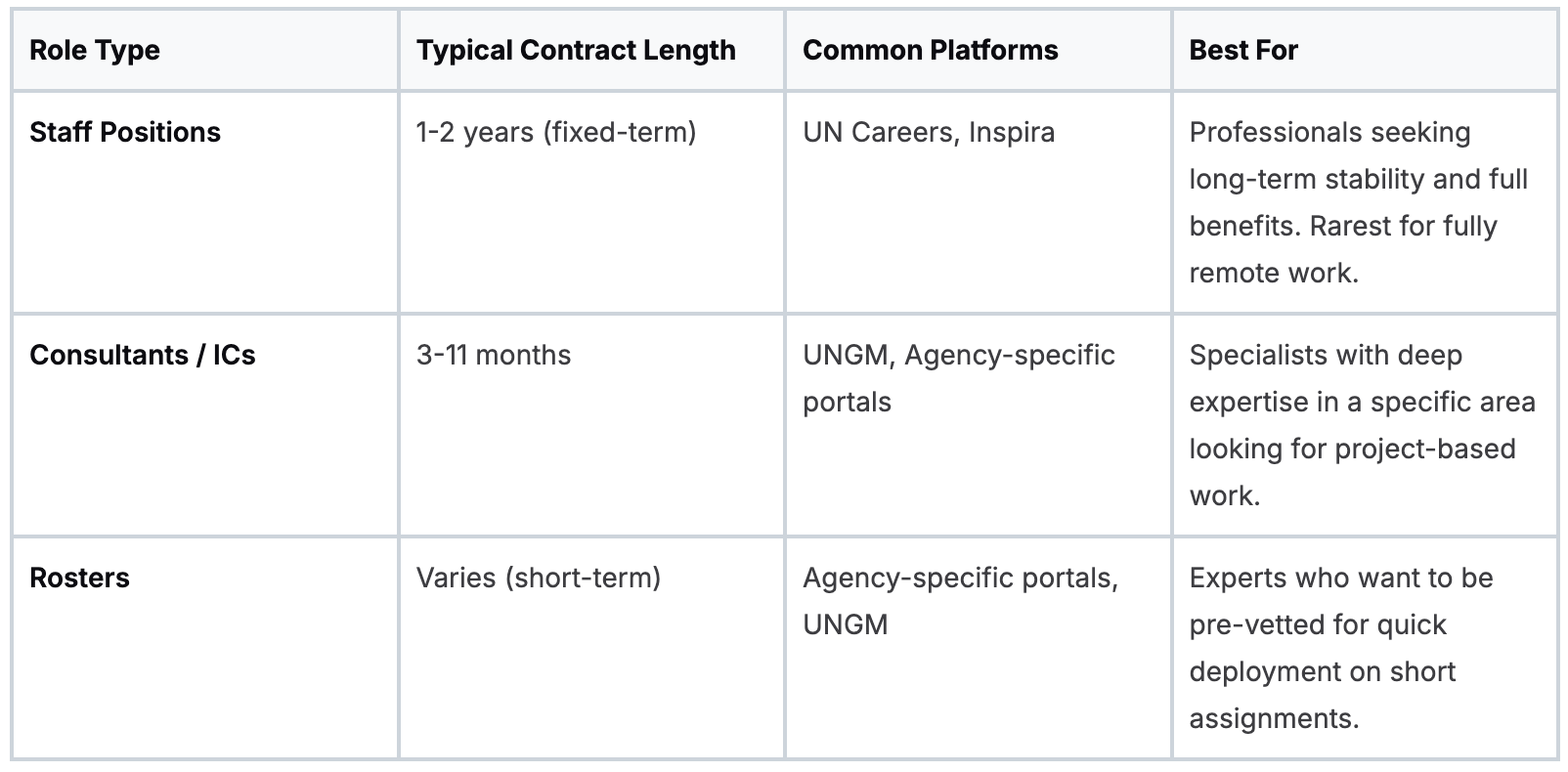 As you search, you’ll see that remote UN work falls into a few categories. Knowing the difference is critical before you apply.
