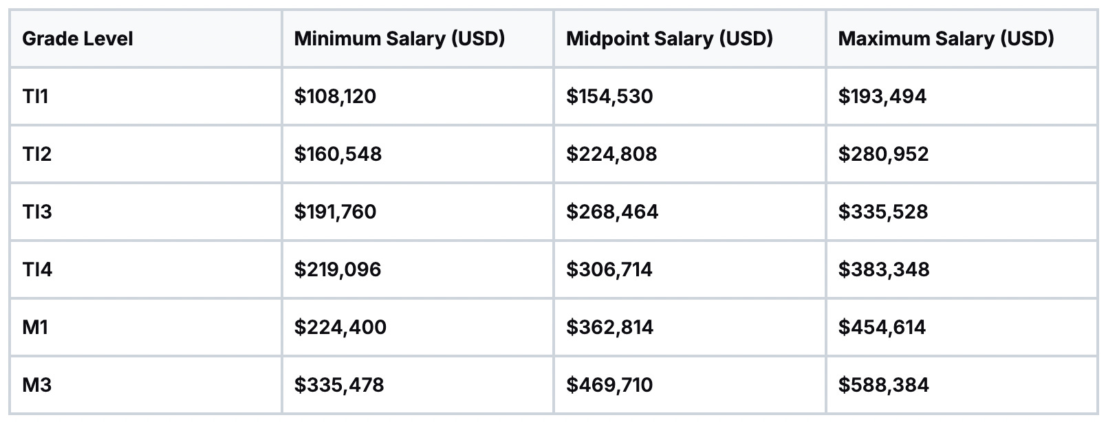 The table below lays out the full international salary structure for a projected 2026, showing the minimum, midpoint, and maximum you can expect at each grade.