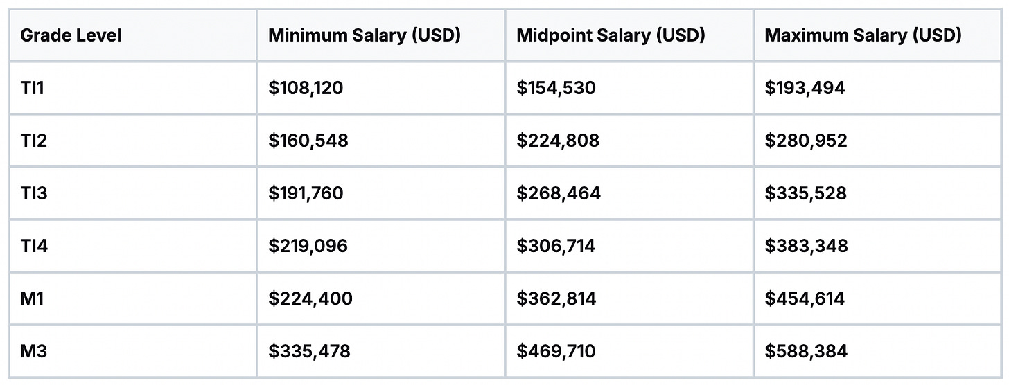 TI4 (Lead Professional): For specialists with deep expertise and leadership qualities. You’ll need 12+ years of high-level experience to even be considered.