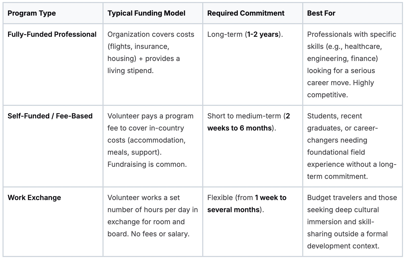 The word “volunteer” covers a massive range of roles. You have high-skill, stipended positions that are essentially entry-level professional jobs. You also have short-term, fee-based placements focused on cultural immersion.