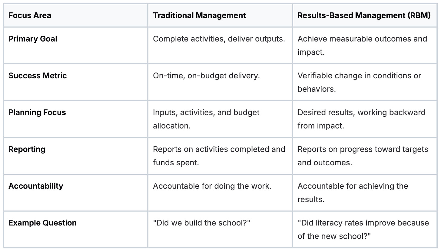 Forget traditional project management. RBM is the discipline of managing for outcomes. It forces organizations to answer the one question that truly matters: did our work actually make a difference?