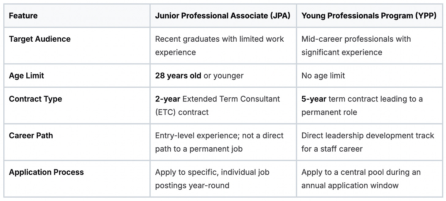 The simplest way to think about it: the JPA is a two-year, entry-level apprenticeship. The YPP is a highly competitive, five-year leadership development program for mid-career professionals gunning for a permanent staff role.