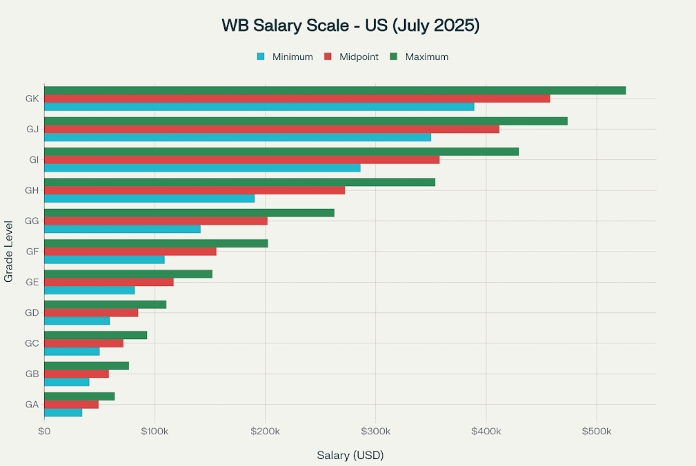 For international staff, World Bank compensation is genuinely competitive with top-tier private sector take-home pay, plus you get job security, excellent benefits, and meaningful work.