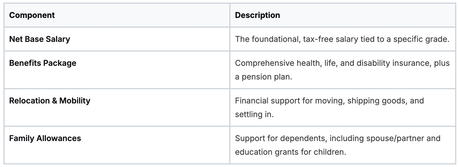 Finally, a suite of allowances covers the unique costs of being part of an international workforce, especially for those relocating. These funds handle the practicalities of moving, housing, and educating your children.