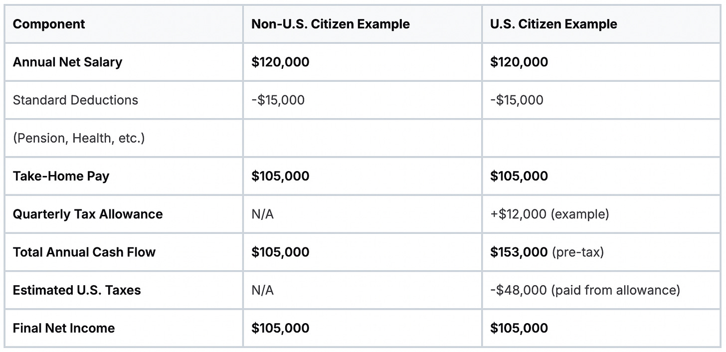 This is the most confusing and attractive part of the package. The “net-of-tax” salary is a core feature, but it works differently depending on your citizenship.