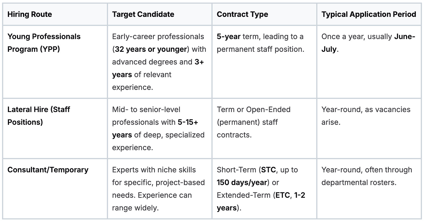 Each path serves a distinct purpose for the Bank. Aligning your profile with the right one is crucial before you even think about hitting “apply.”