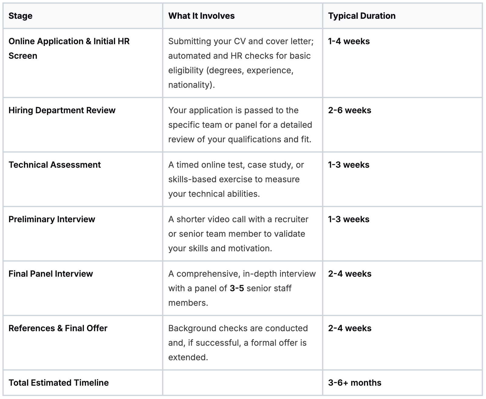 To help you map out your journey, here’s a look at the typical stages and what you can expect in terms of timing. These are estimates, and the process can vary depending on the role and department.